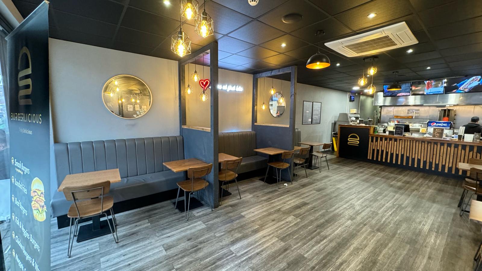 Burgerlicious which has traded for 2 years and thrived with a turnover in excess of £700,000 . It boasts a 5 Star Hygiene Rating and a 4.6/5 rating with over 180 great Google reviews. The business is fully staff run and employs 10 staff. This is a great opportunity to purchase an established takeaway with a turnkey operation which is a great base to build upon. As such early viewing is highly recommended. The premises was fully fitted out prior to the launch at an expense of around £120,000 and is well maintained to a high standard. The restaurant seats around 40 customers at full capacity. The current lease is to be assigned to the new owner and has around 8 years remaining at an asking rent of £15,000 plus VAT per annum. A service charges also payable at £2,400 per annum. We believe the business will prove a successful acquisition, especially for a dedicated, enthusiastic purchaser to continue to exploit the full potential and derive maximum profits.